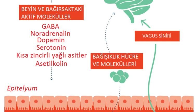 İletişim hatları tamamen anlaşılmamasına rağmen, bağırsaktaki bakteriler ve beyindeki hücreler birkaç farklı yönden bağlantıda kalabilirler. Sinyaller vagus kanalı aracılığıyla ilerleyebilir, ya da serotonin gibi kimyasal taşıyıcılarla taşınabilir ve bağışıklık sistemi aracılığıyla gezinen moleküller aracılığıyla taşınabilir.